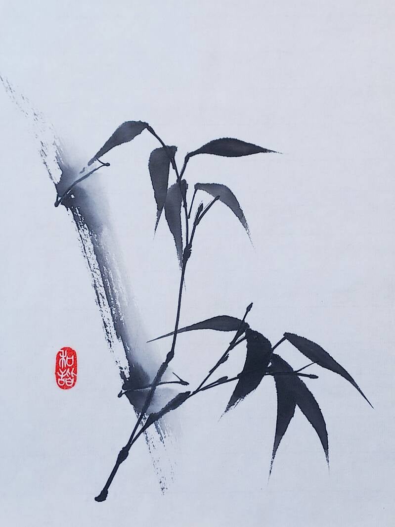 Sumi-e, letterlijk vertaald: zwarte inkt plaatje, is voor mij sterk verbonden met zenmeditatie. Aandachtig in het nu, met de volledige focus op waar je mee bezig bent en het loslaten van het resultaat. Door het werken met vrij eenvoudige middelen – water, Japanse inkt, penseel en rijstpapier – en de onmogelijkheid om achteraf te corrigeren, krijgt de binnenwereld geen kans om te ontsnappen. Elke aarzeling, verslapping van aandacht, opwinding, lusteloosheid of verlangen “iets moois” te maken, is terug te zien op het papier. De composities laten veel ruimte voor leeg papier. Maar het is juist die leegte, die het onderwerp definieert.